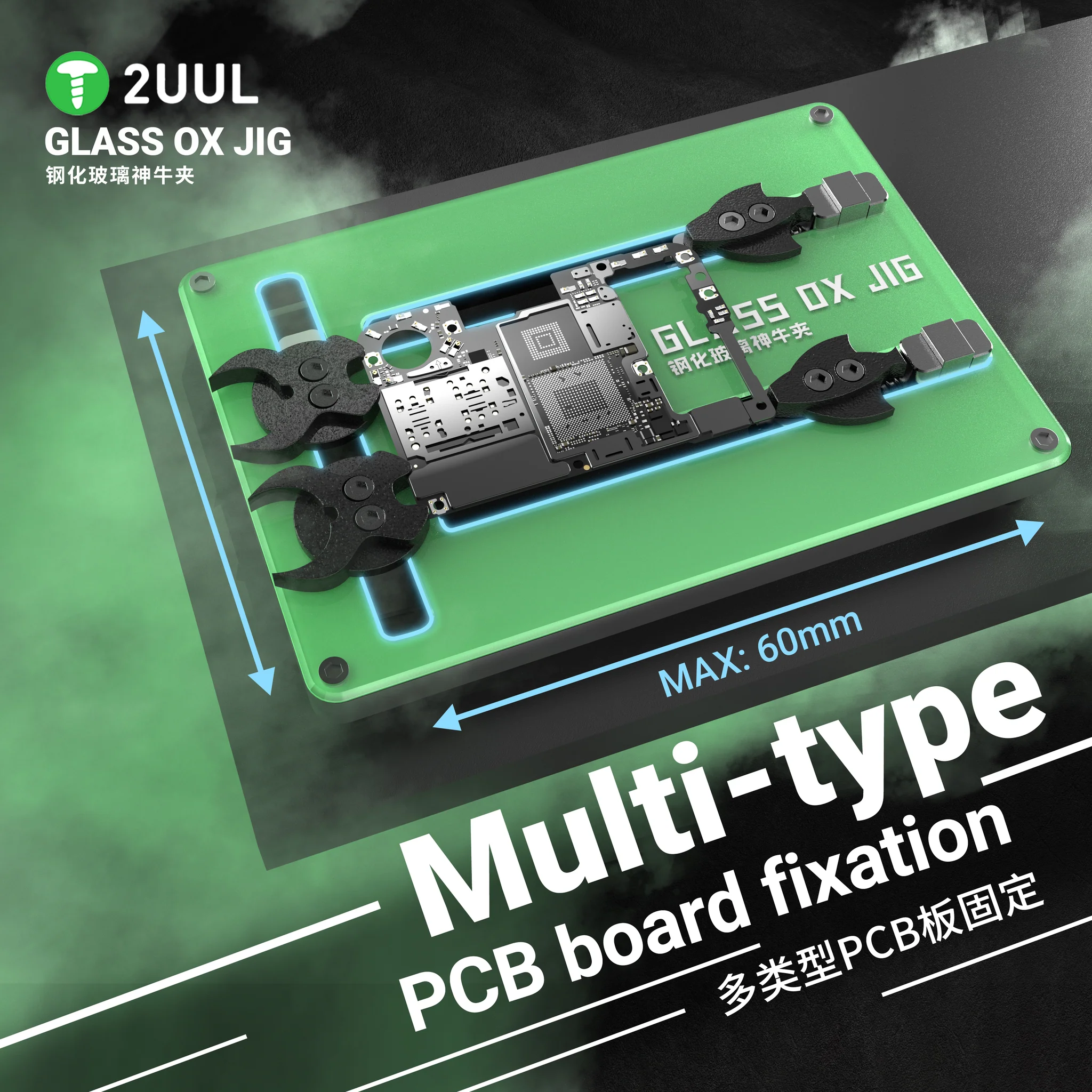 The 2UUL BH21 Glass OX Jig shines through with features that cater to professionals and users aiming for premium results. The glass-based jig surface ensures scratch resistance and stability during soldering or micro-electronic repairs. The lightweight yet robust construction provides portability, enabling you to bring precision wherever you go. Its non-slip base ensures your workbench stays secure, reducing room for error during critical repair processes.