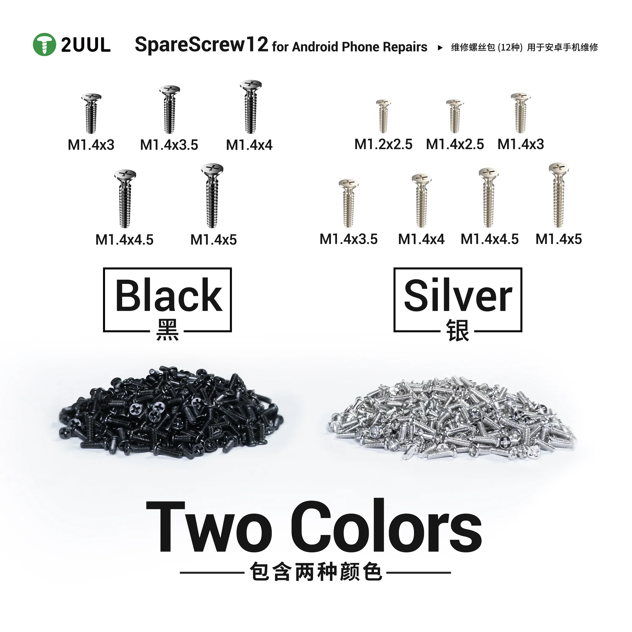 The 2UUL SC12 SpareScrew12 Phillips Screws pack is a comprehensive solution for anyone venturing into Android phone repair. Whether you’re a seasoned technician or a DIY enthusiast, these 1200 high-grade Phillips screws provide the durability and precision required for hassle-free repairs. Forget about searching for compatible screws—this pack has every size you may need to address common repair scenarios efficiently.