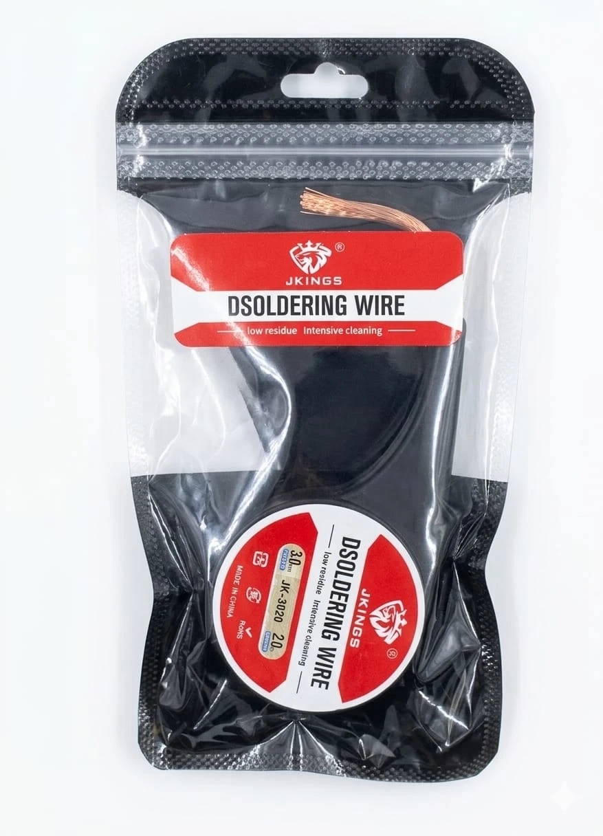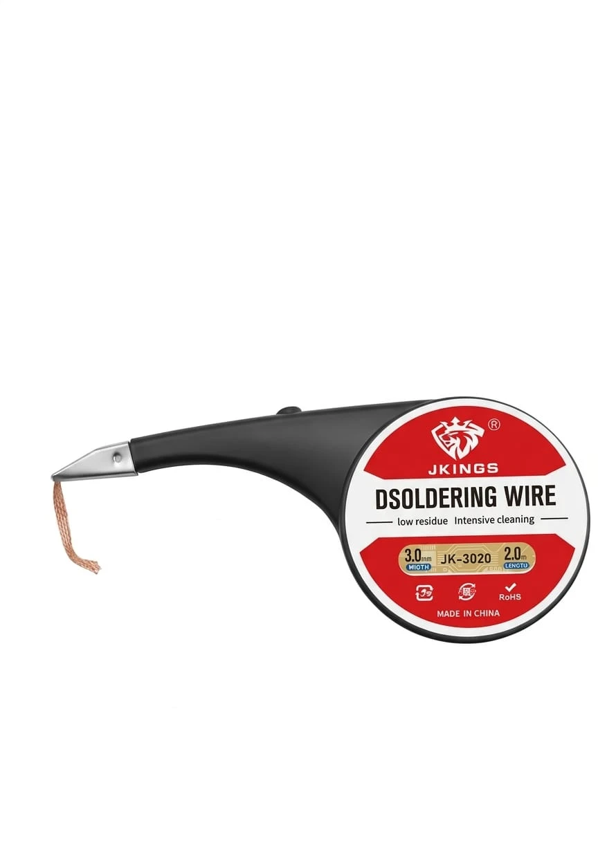 To avoid fire, never use a soldering iron and desoldering wick around combustibles or in an explosive environment