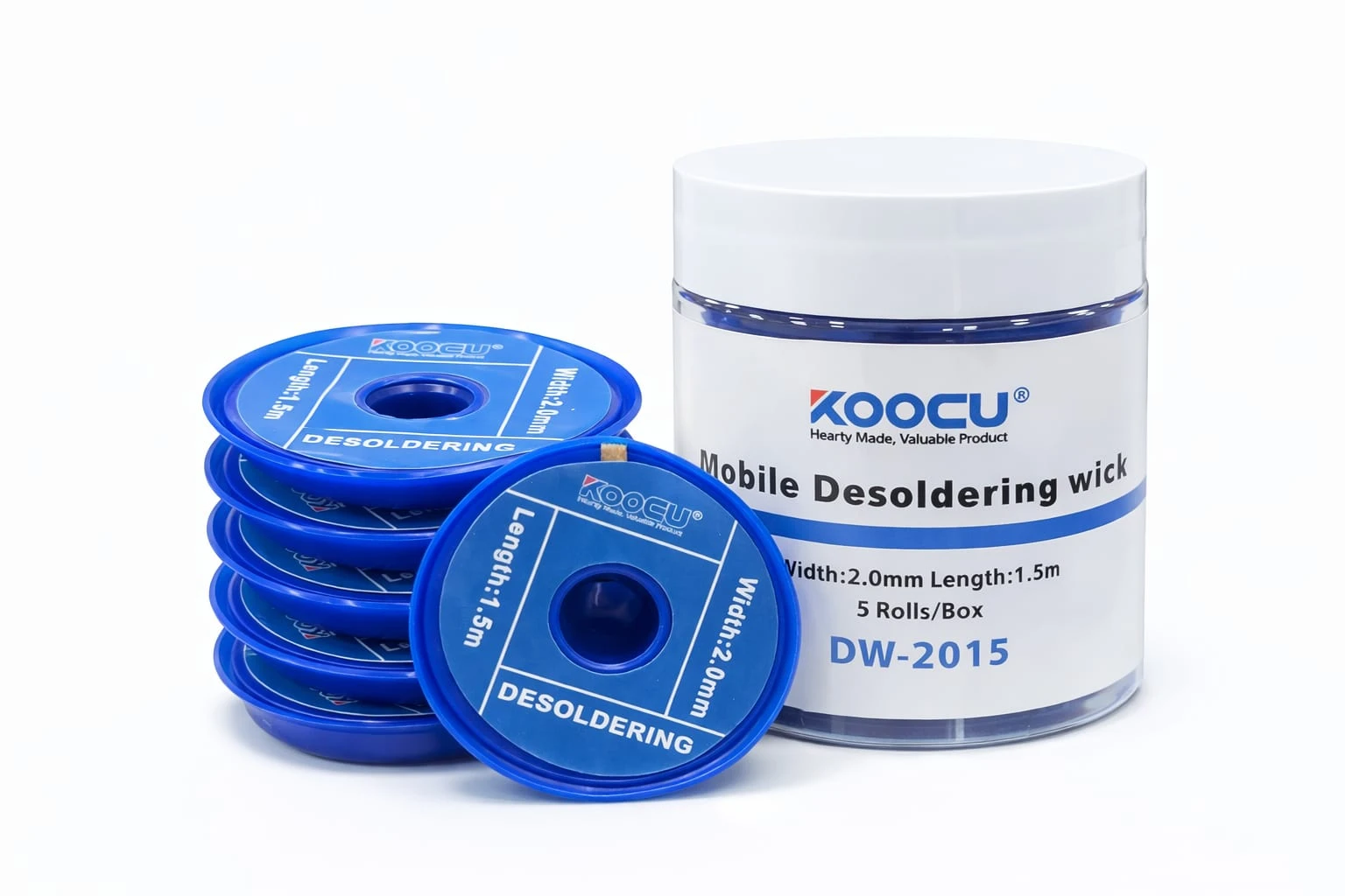 The KOOCU DW-2015 Mobile Desoldering Wick (5 Rolls/Box) is your go-to solution for effortless and precise solder removal. Whether you’re handling intricate electronics or working on small circuit board repairs, this product is designed to meet your desoldering needs with unmatched efficiency. Crafted for professionals and DIY enthusiasts alike, it offers exceptional consistency, ensuring every repair job is performed with precision.